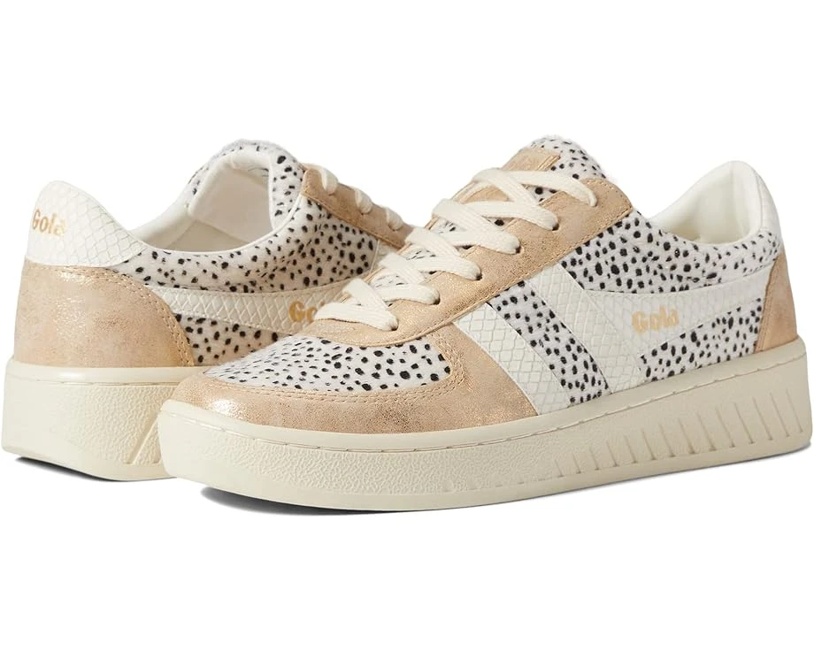 Sport a street-style look wearing the Gola® Grandslam Mamba Shoes. SKU: #9621792Textile, leather, and synthetic upper. Textile and synthetic lining. Faux cheetah print and printed panels on the upper. Classic lace-up closure. Round toe. Padded collar and tongue for superior comfort. Signature brand name logo on tongue, heel label, and upper. Synthetic outsole for added traction and durability. Imported. Product measurements were taken using size 8, width B – Medium. Please note that measurements may vary by size.Measurements: