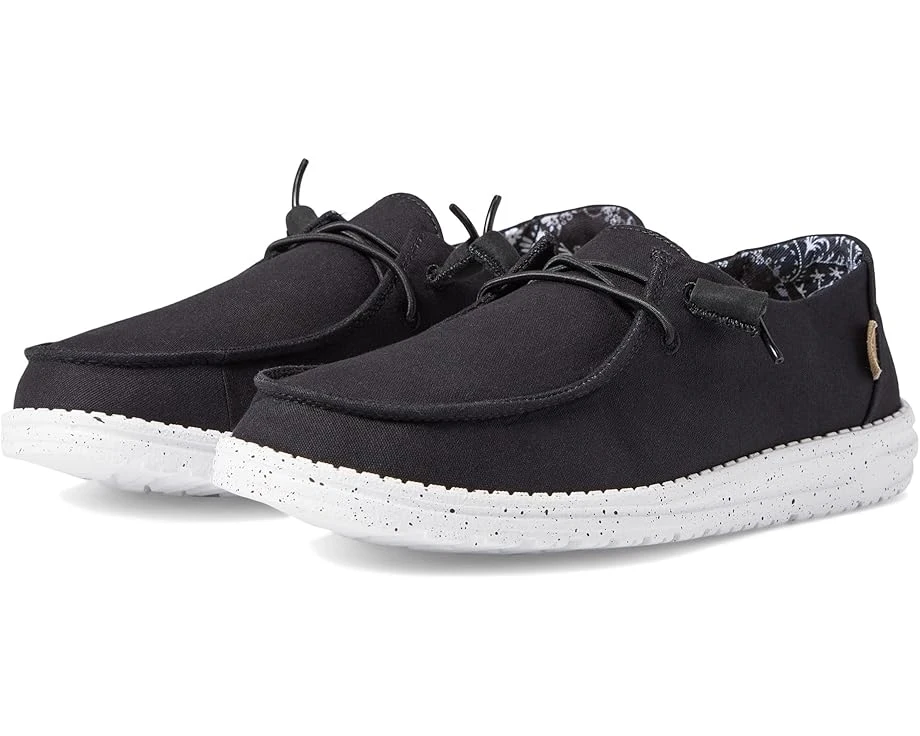Feel relaxed on your busiest day by wearing the Hey Dude® Wendy Basic loafers.SKU: #9848858Cotton canvas upper.Contrasting, printed-cotton lining.Leather-lined, removable insole.Easy slip-on style with elasticized lace panel.Brand woven label on the quarter.Round moc toe design.Flex & Fold ultralight outsole.Imported. Product measurements were taken using size 9, width M. Please note that measurements may vary by size.Measurements: